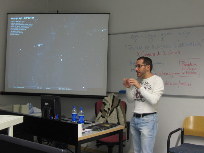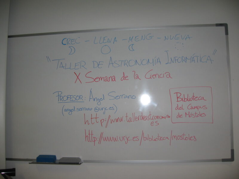 semanaciencia2010-noticiaTaller de Astronomía Informática, Semana de la Ciencia y la Innovación, Biblioteca del campus de Móstoles de la Universidad Rey Juan Carlos, 11-18/11/2010.