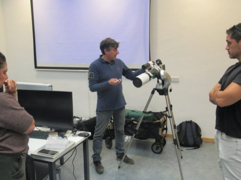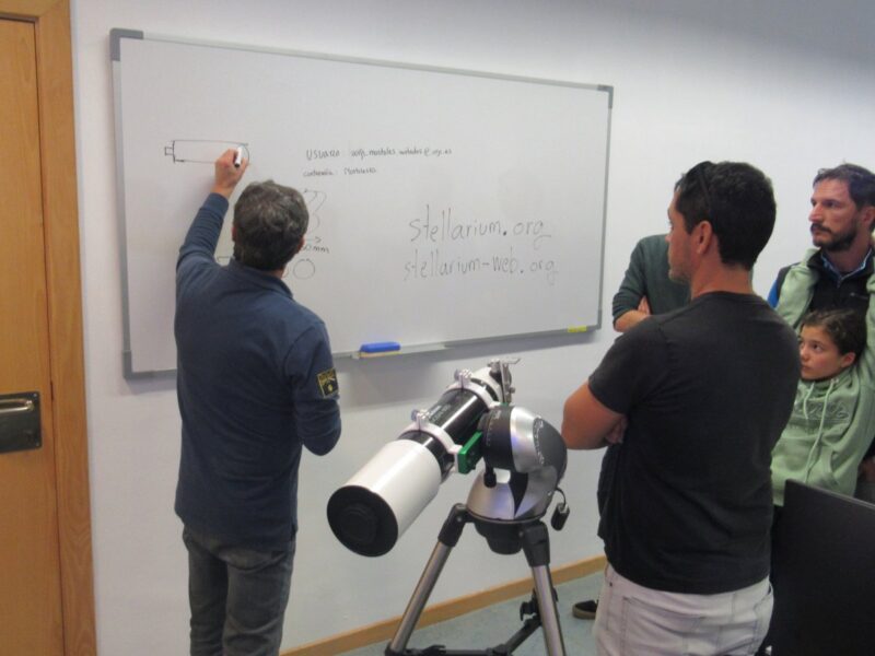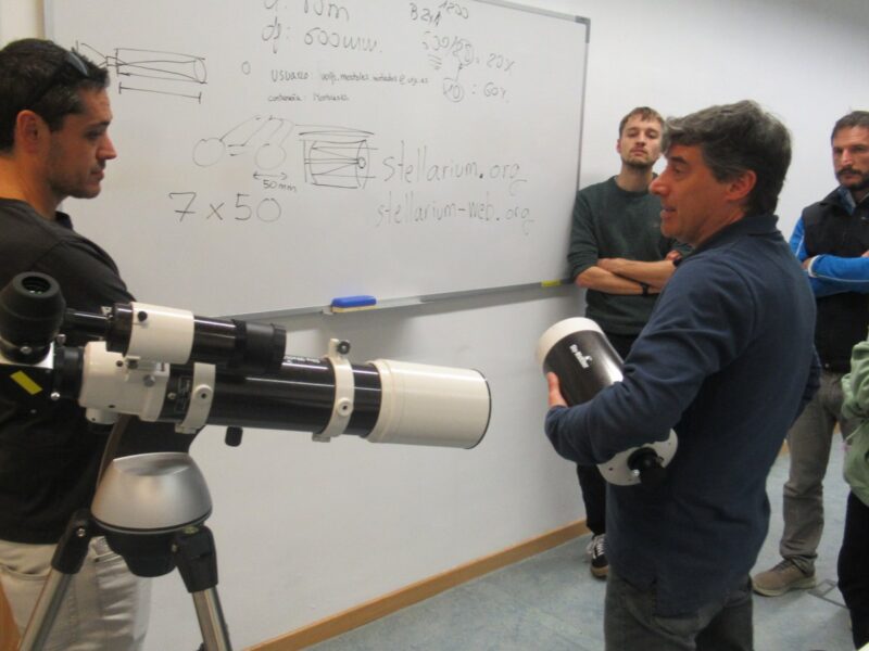 Taller práctico de Stellarium con telescopio y observación astronómica, Semana de la Ciencia y la Innovación, Biblioteca del campus de Móstoles de la Universidad Rey Juan Carlos, 11/11/2025. Actividad organizada en colaboración con el profesor Francisco Carreño Conde (ESCET). La observación tuvo que cancelarse por las condiciones meteorológicas.